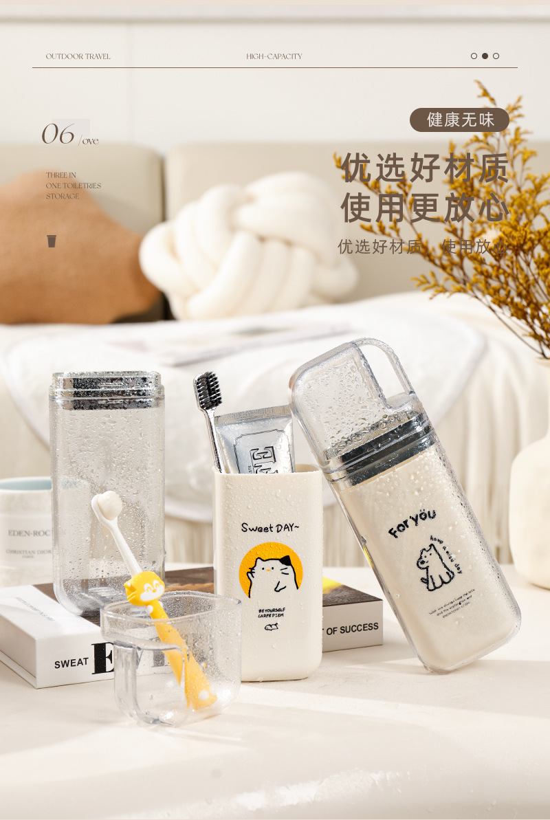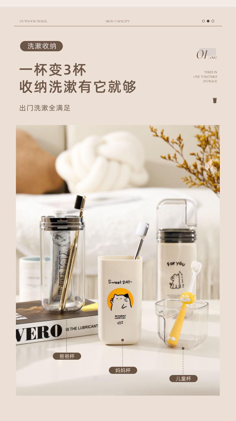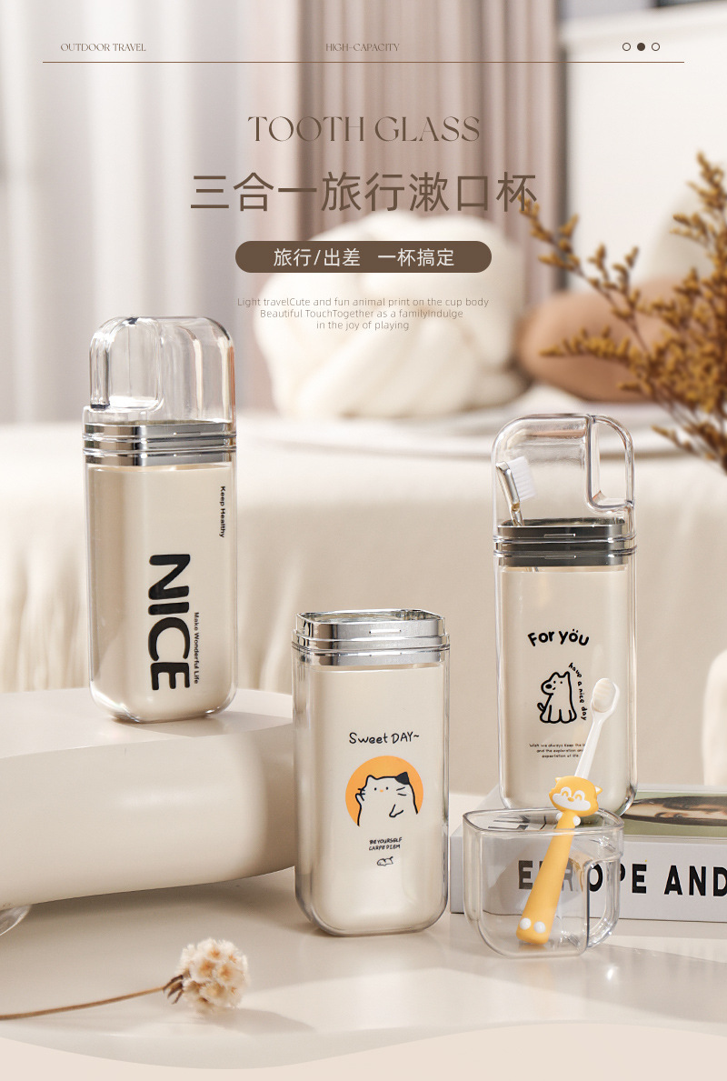Cốc súc miệng tay cầm du lịch ba trong một cốc đựng đồ răng sang trọng nhẹ bộ cốc đựng đồ dùng răng đựng đồ vệ sinh sáng tạo đa chức năng cầm tay