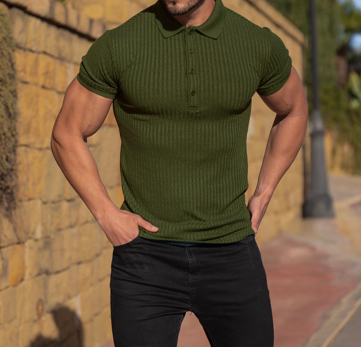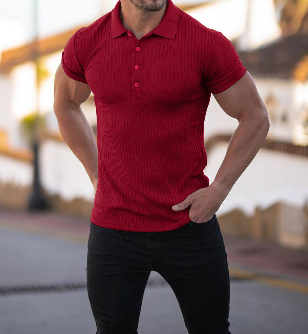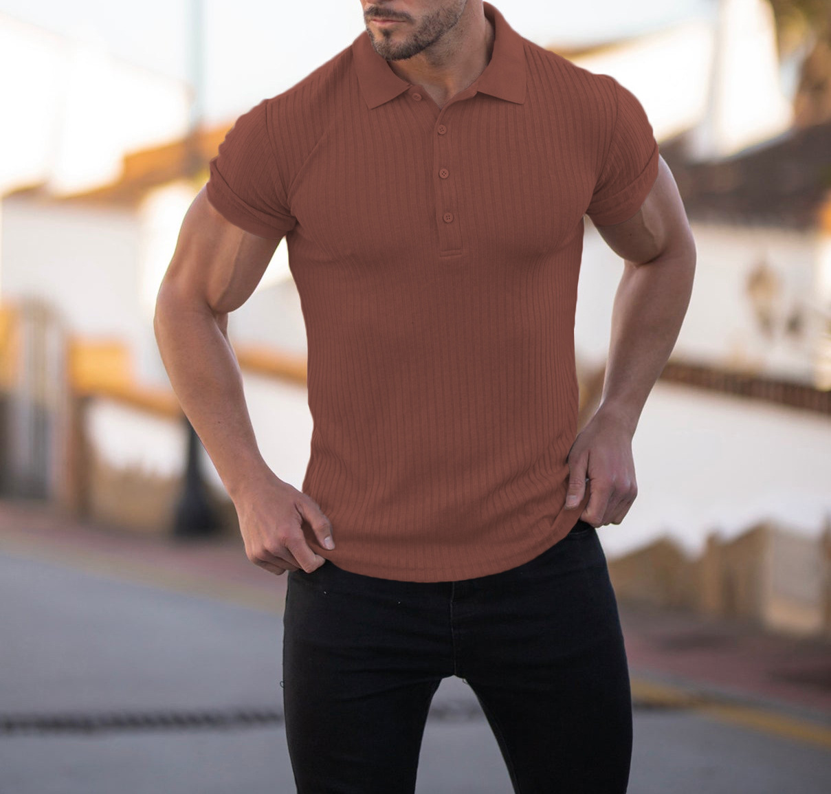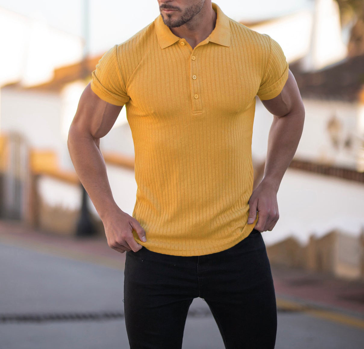 Phong cách mới Âu Mỹ xuyên biên giới Ngoại Thương wish nam mùa hè thể thao thể dục giải trí co giãn sọc dọc ngắn tay Áo polo nam