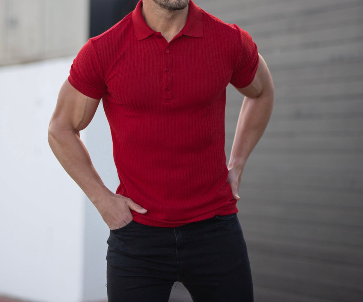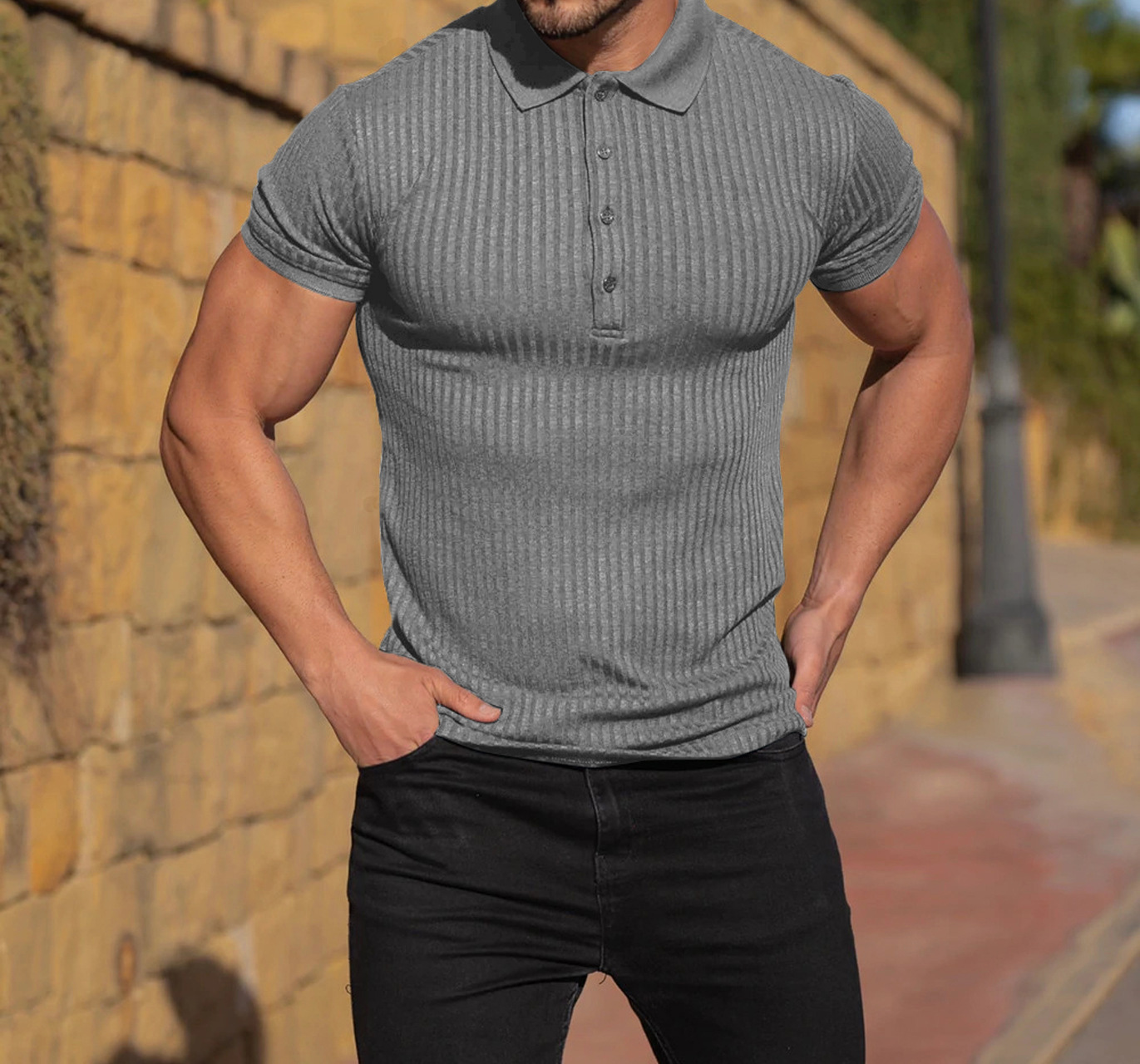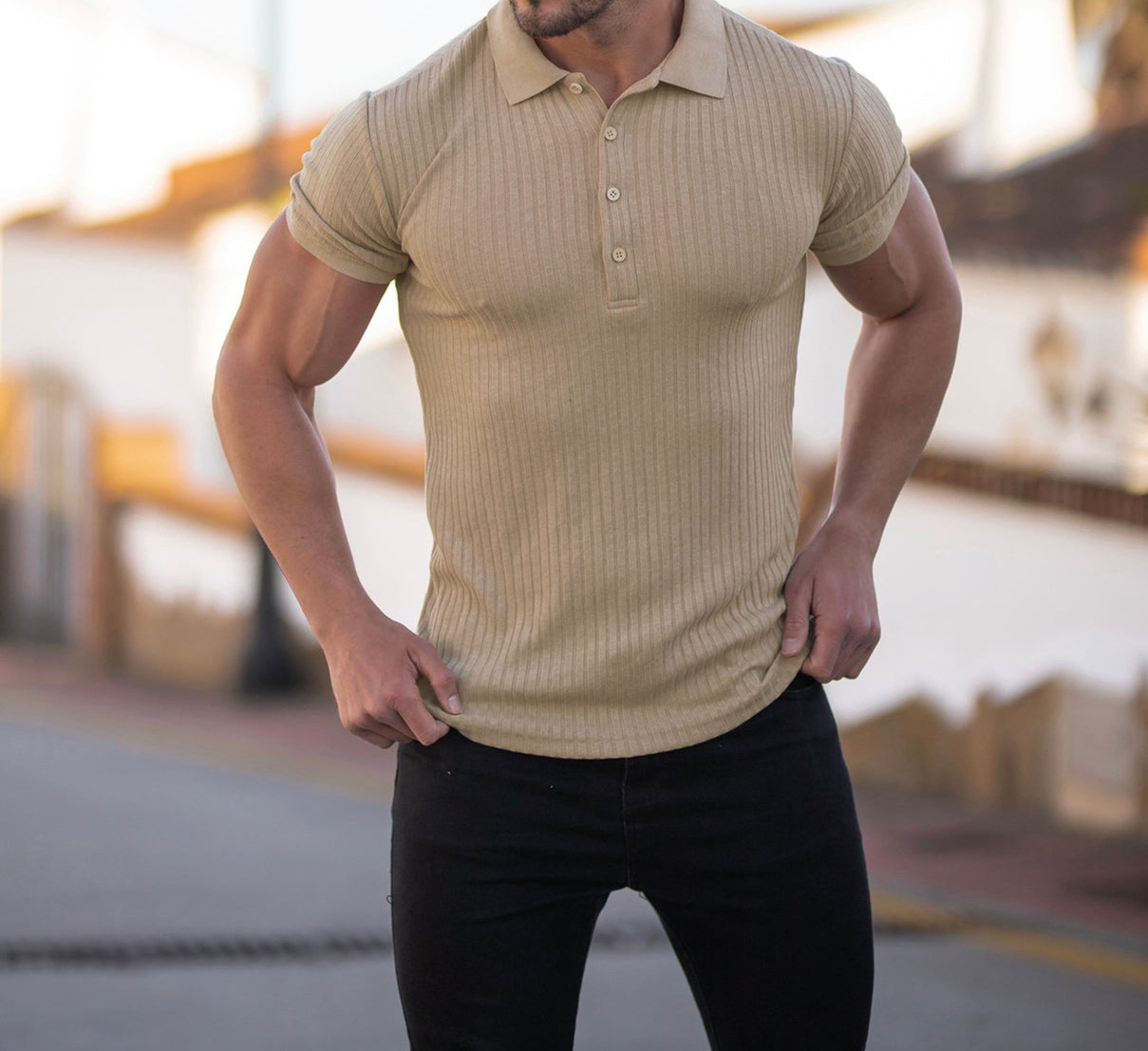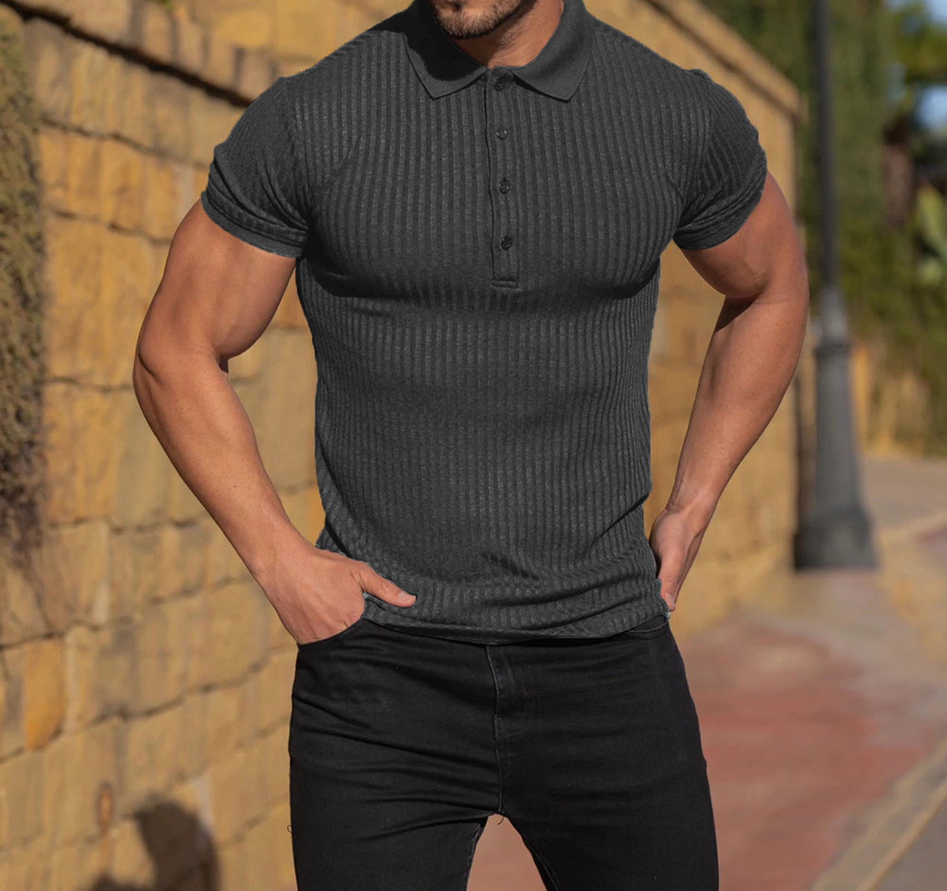 Phong cách mới Âu Mỹ xuyên biên giới Ngoại Thương wish nam mùa hè thể thao thể dục giải trí co giãn sọc dọc ngắn tay Áo polo nam